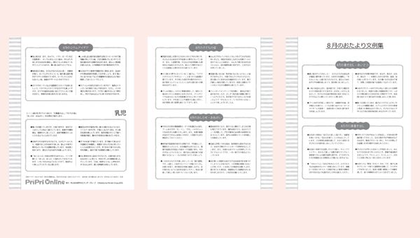 「行事書き出し」「子どもの姿」「おしらせ・おねがい」