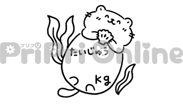ラッコと「たいじゅう」の飾り文字(白黒)