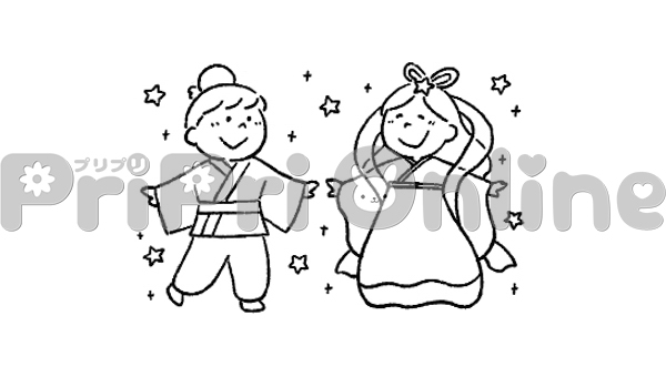 彦星と織姫のイラスト(白黒)