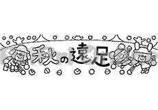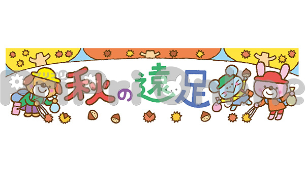 栗拾いする動物たちと「秋の遠足」の飾り文字