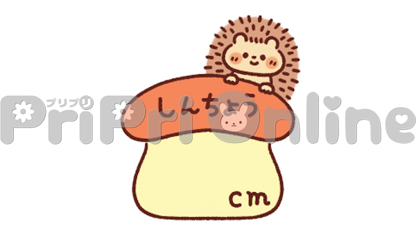 きのことハリネズミと「しんちょう」の飾り文字