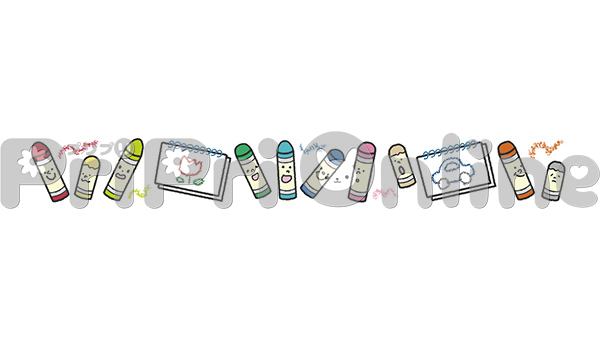 カラフルなクレヨンの飾り罫