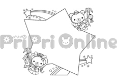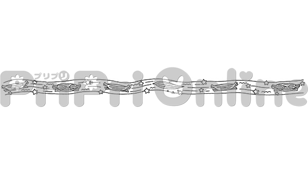 天の川を流れる笹舟の飾り罫(白黒)