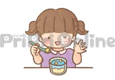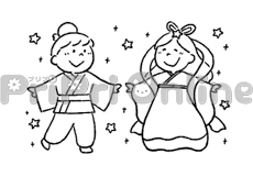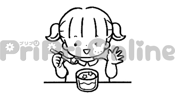 七夕のゼリーを食べる女の子のイラスト(白黒)