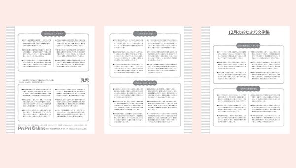 ◆0・1・2歳児の乳児クラスへ向けた文例