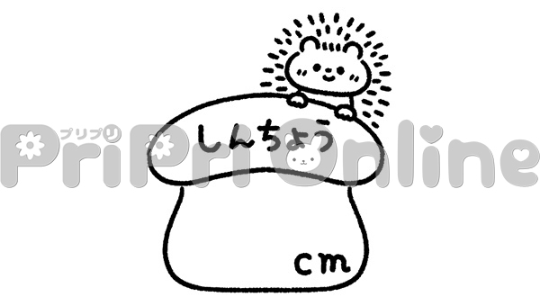 きのことハリネズミと「しんちょう」の飾り文字(白黒)