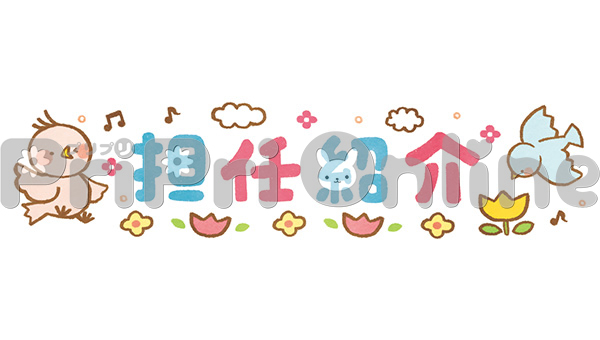 小鳥と春の花と「担任紹介」の飾り文字