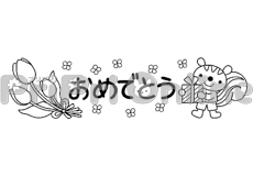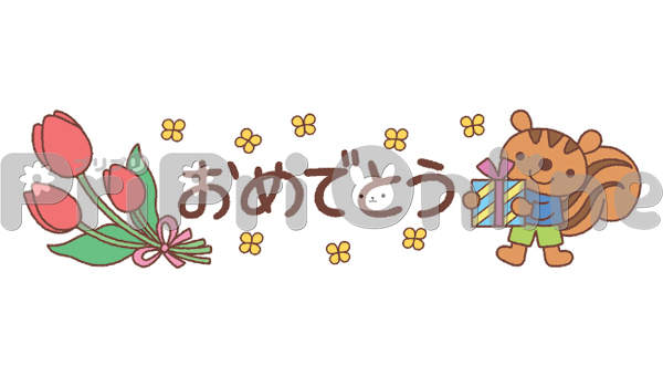 りすとチューリップと「おめでとう」の飾り文字