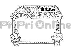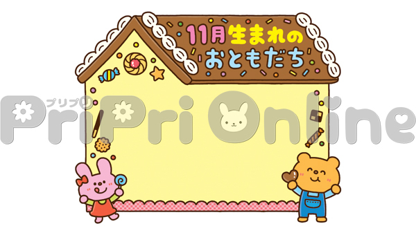 お菓子の家と動物たち、「11月生まれのおともだち」の飾り枠