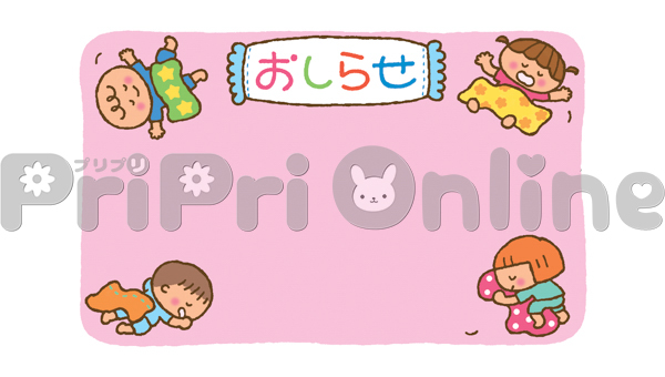 昼寝する子どもたちと「おしらせ」の飾り枠
