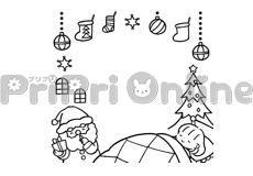 コタツでみかんを食べる男の子のイラスト(白黒)