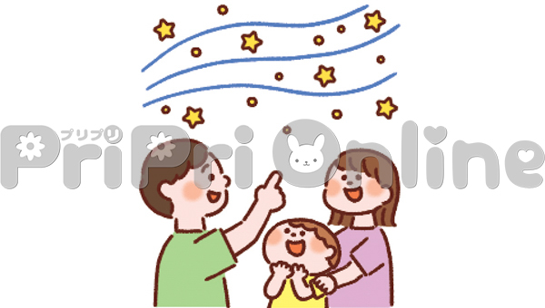 天の川を眺める家族のイラスト