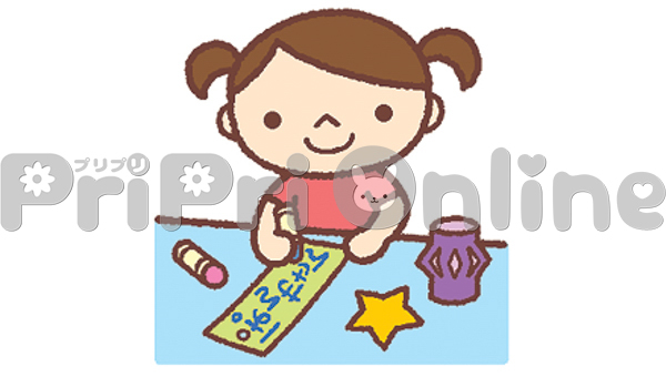 短冊に願い事を書く女の子のイラスト