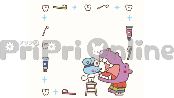 歯科検診をする動物たちの飾り枠