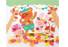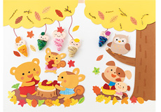 モモンガが秋の森であそんでいるような吊るし飾りです。 ハギレを使って、おしゃれなモモンガと紅葉に。