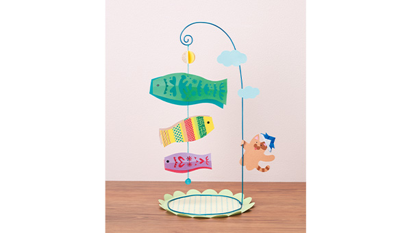 表裏で表情の違うこいのぼりをカラーワイヤーに吊るします。 おさかなを狙うねこちゃんがポイント!
