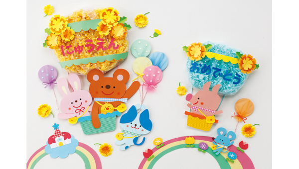 たんぽぽの花をあしらったボリュームのある気球。 「風船とたんぽぽのガーランド」とセットアップで飾れます。