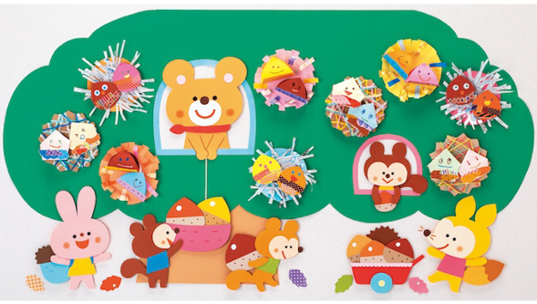 子どもたちに栗のお顔を書いてもらうことで、個性豊かな栗の木になります。