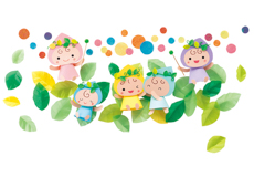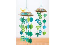 新緑まぶしい季節にぴったりな、妖精ちゃんとえんどうまめの壁面飾り。 綿をカラーポリ袋やハギレで包んで作った、立体的なえんどうまめがポイントです。