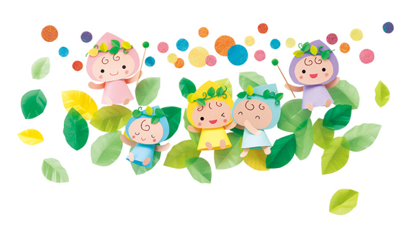 みずみずしい新緑の中で楽しそうに遊ぶ、妖精ちゃんたちの部屋飾りです♪ 壁面はもちろん、窓飾りにもオススメ!