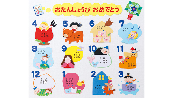 子どもたちも絵本でおなじみのキャラクターたちが、お誕生表に大集合! 「今月のお話はなにかな?」と、子どもたちとの会話も弾むこと間違いなしです。