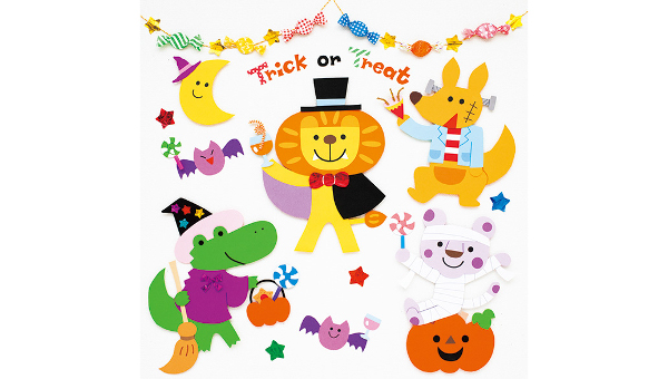 動物たちが仮装して、楽しいハロウィンパーティーのスタート! ホイル紙で作った星が良いアクセントになります。