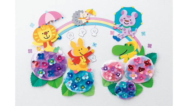 光沢と透明感のあるあじさいで、保育室がぱっと明るくなります。