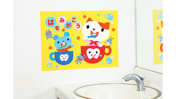 手洗い場に貼って、みんなで楽しく歯みがきしましょう!