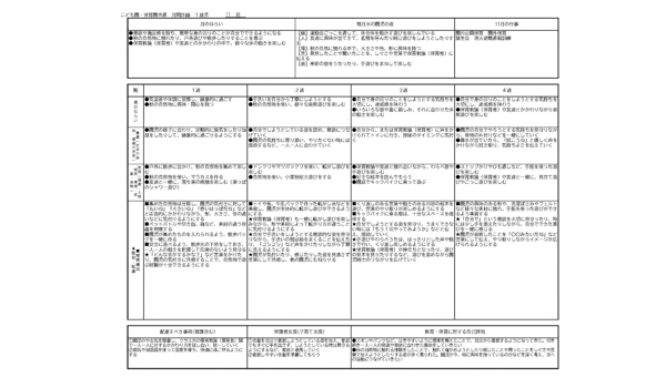 ※各指導計画の表組フォーマットは文字が入っていますが、あくまで計画案です。ご使用に際しては、内容を十分ご検討の上、各施設の方針に沿った文章を入力してください。各施設から発信される文章の内容については施設の責任となることをご了承ください。