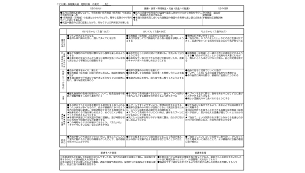 ※各指導計画の表組フォーマットは文字が入っていますが、あくまで計画案です。ご使用に際しては、内容を十分ご検討の上、各施設の方針に沿った文章を入力してください。各施設から発信される文章の内容については施設の責任となることをご了承ください。