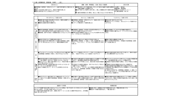 ※各指導計画の表組フォーマットは文字が入っていますが、あくまで計画案です。ご使用に際しては、内容を十分ご検討の上、各施設の方針に沿った文章を入力してください。各施設から発信される文章の内容については施設の責任となることをご了承ください。