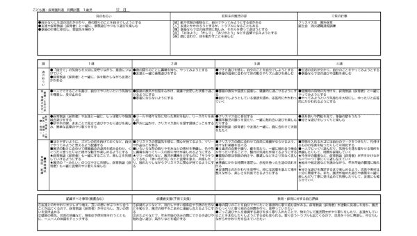 月間指導計画を作る上で役に立つ指導計画案とフォーマットです。