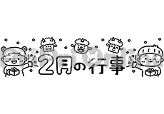 節分の豆まきと「2月の行事」の飾り文字(白黒)