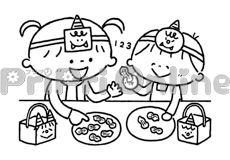 節分の豆の数を数える子どもたちのイラスト(白黒)