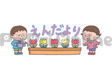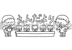 チューリップと子ども「えんだより」の飾り文字(白黒)