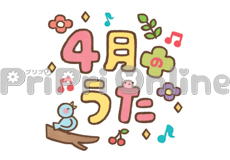 歌う小鳥と「4月のうた」の飾り文字(白黒)