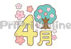 イチゴとネズミと「4月の行事」の飾り文字(白黒)